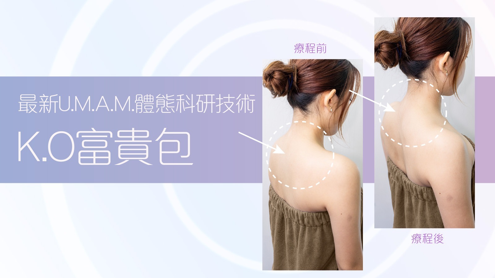 富貴包伴隨後頸黏連、烏龜頸、上背增厚?Lumiere U.M.A.M.體態管理系統結合科研儀器深層鬆解筋膜與專業人手矯正姿勢,不單純減脂,而是從體態源頭收細富貴包,重塑頸部優美線條。