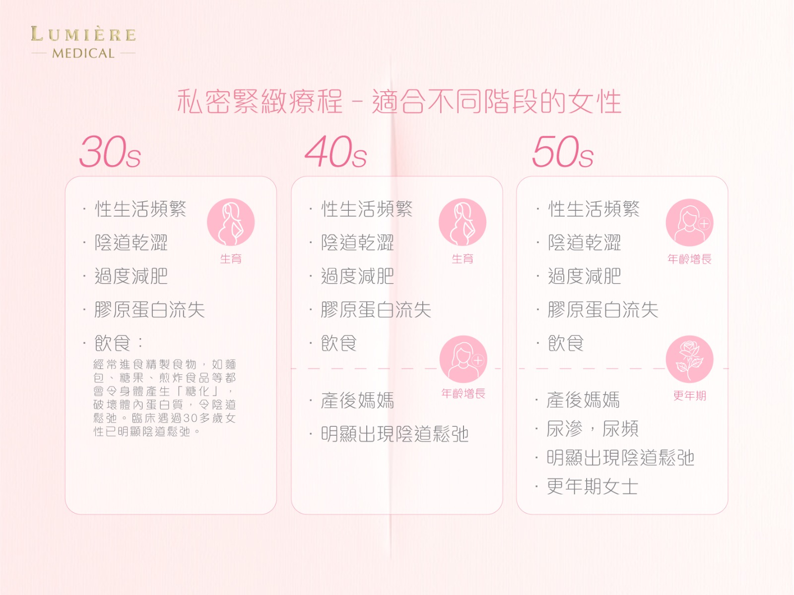 A.經期、產後 3 個月內、患有性傳播感染、盆腔器官脫垂、正在進行盆底物理治療均不適合進行療程,建議進行療程前先諮詢醫生意見。