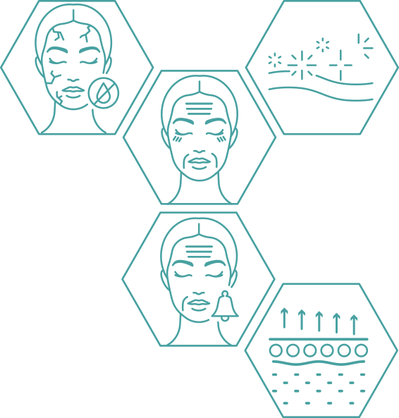 深層保濕、抗衰緊緻、提亮盾色,適台乾燥、缺水、暗沉的肌膚。
