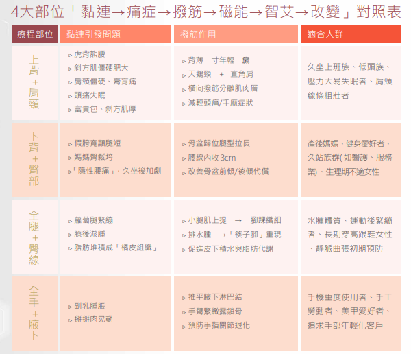 功效:緩解肌肉拉傷,扭傷、疏通活化微循環、以開穴、活經絡、疏通系統化重點激活循環及,通過撥動 筋膜與經絡節點,疏通「氣滯血瘀」,恢復氣血循環。